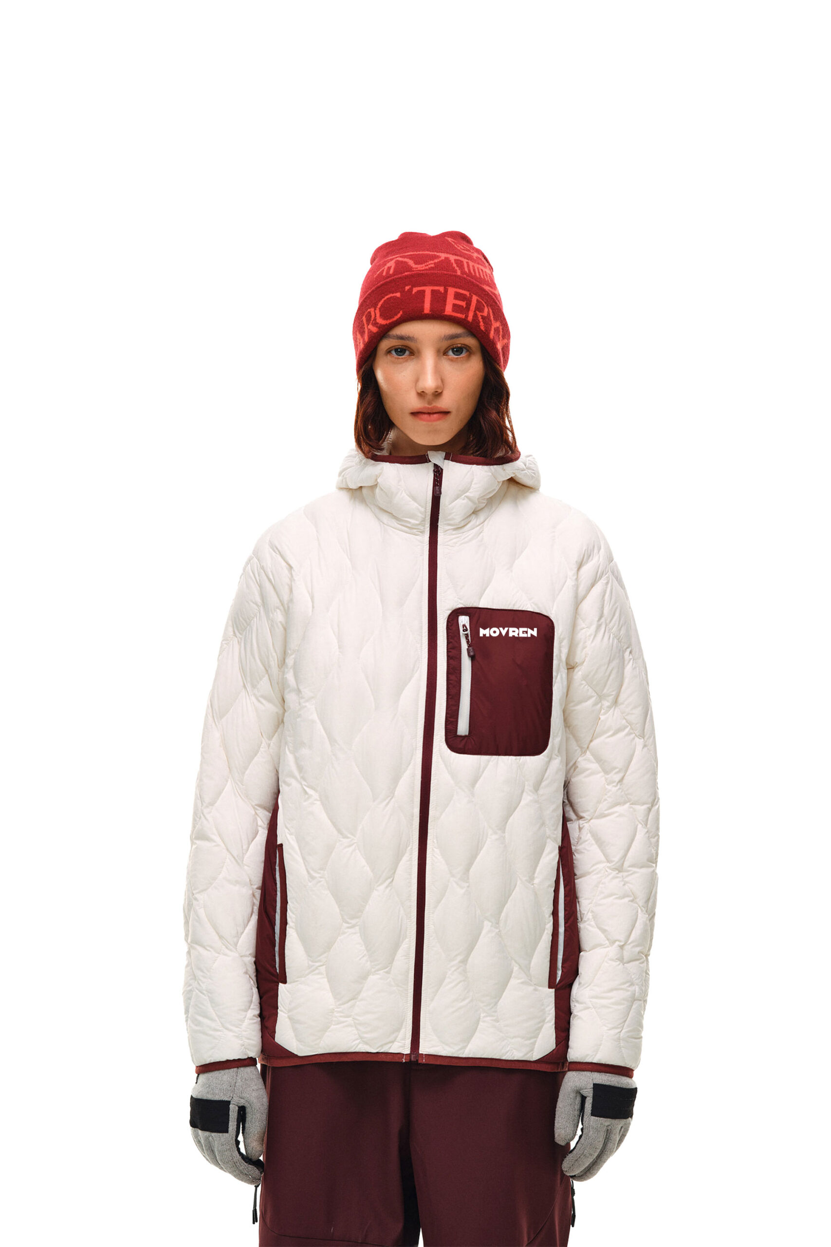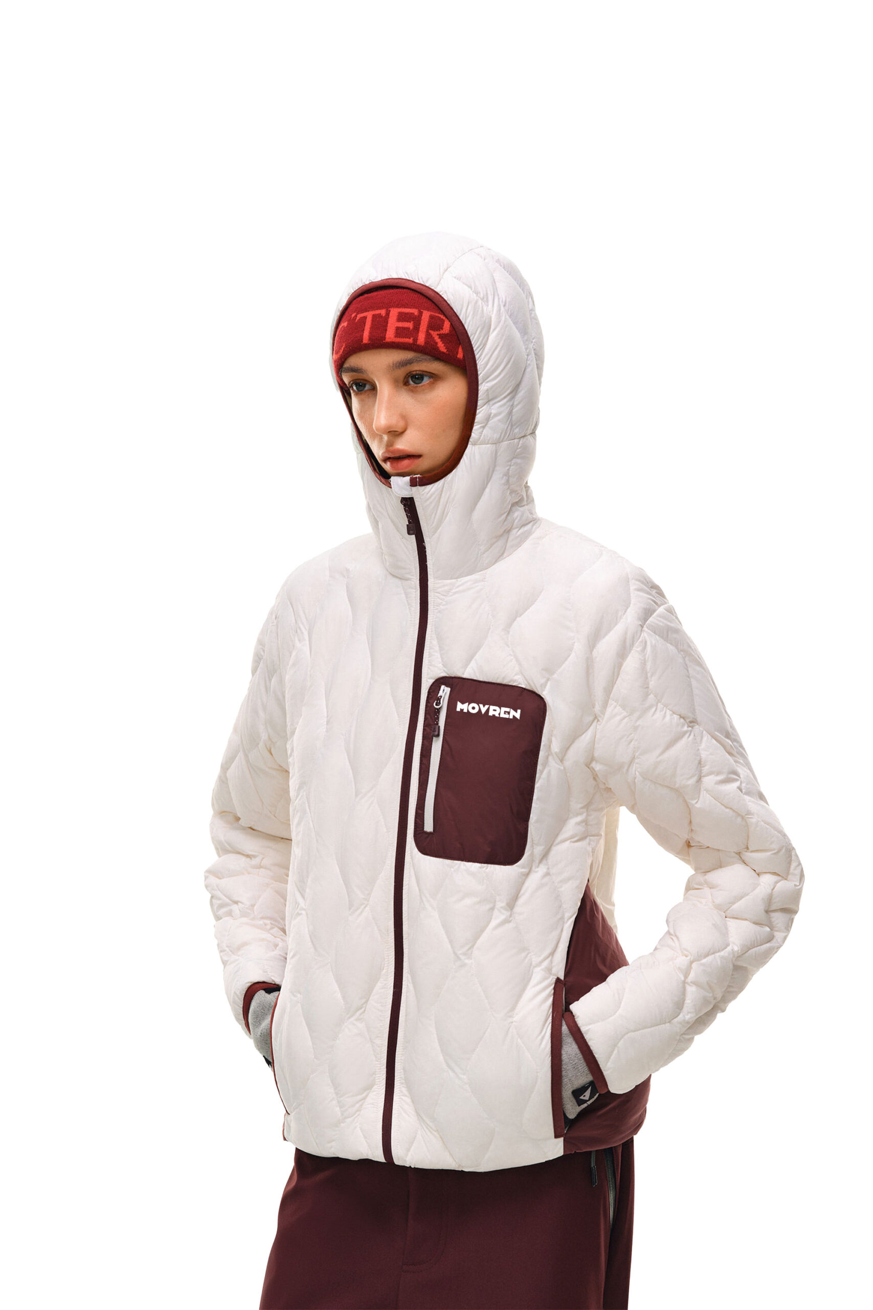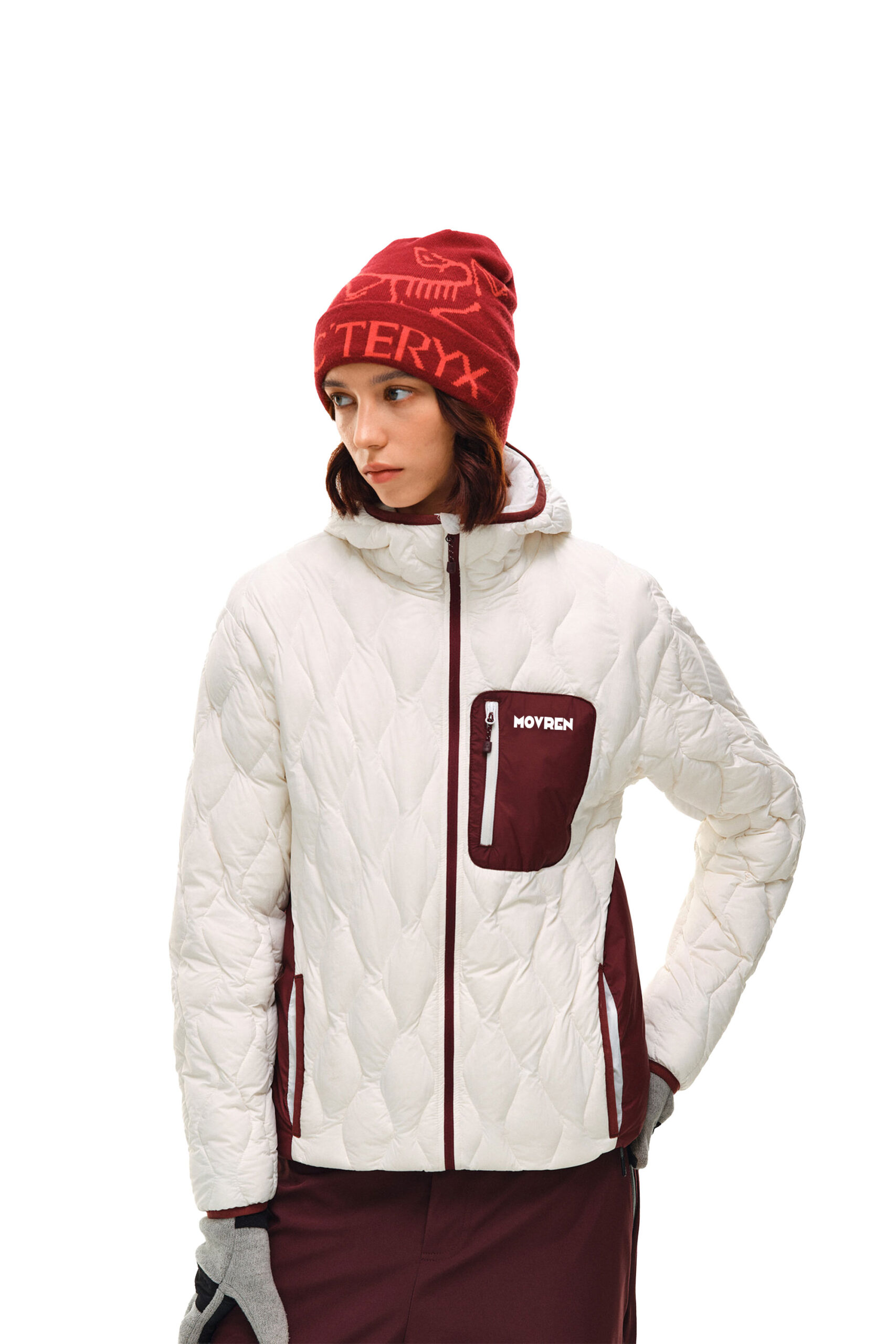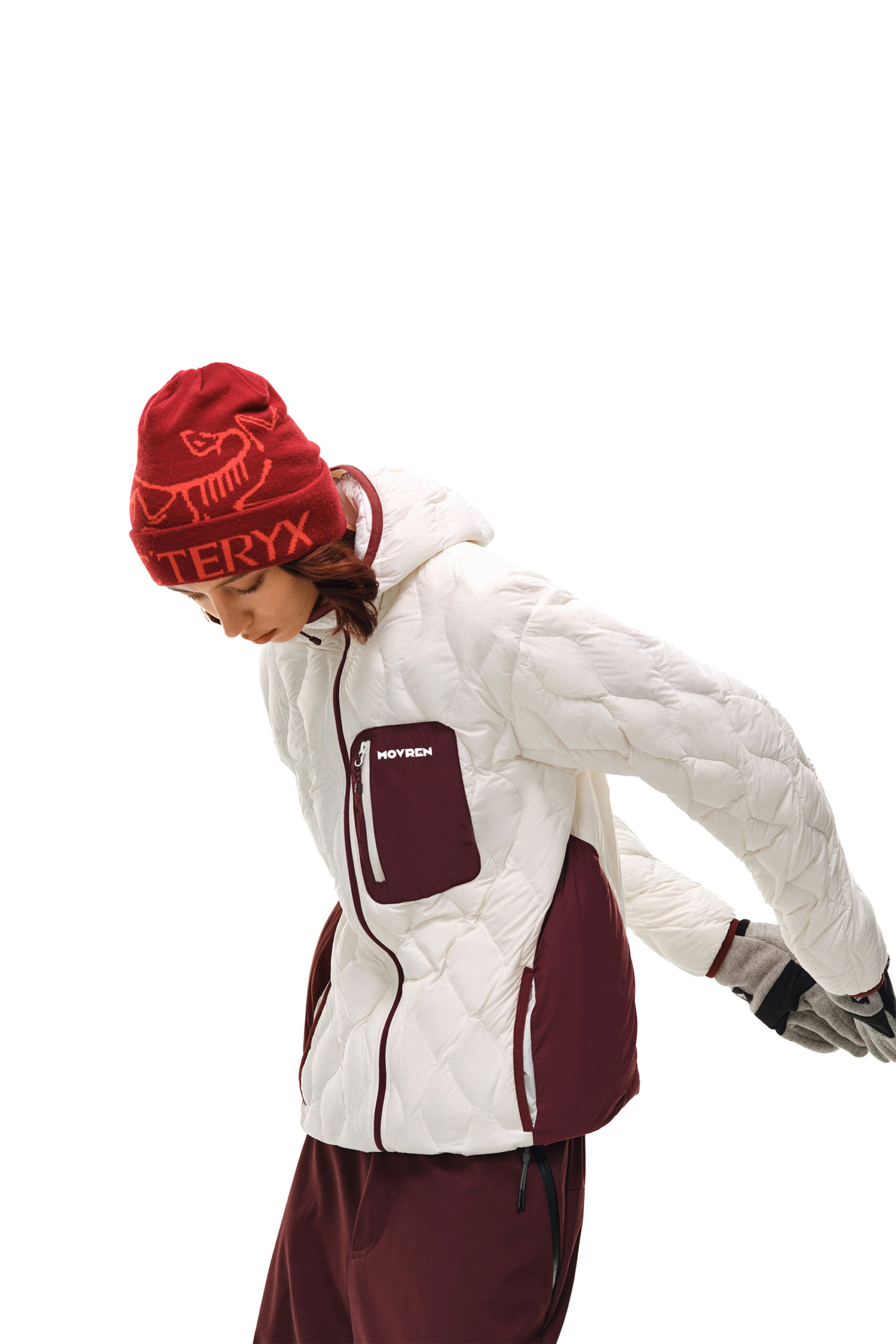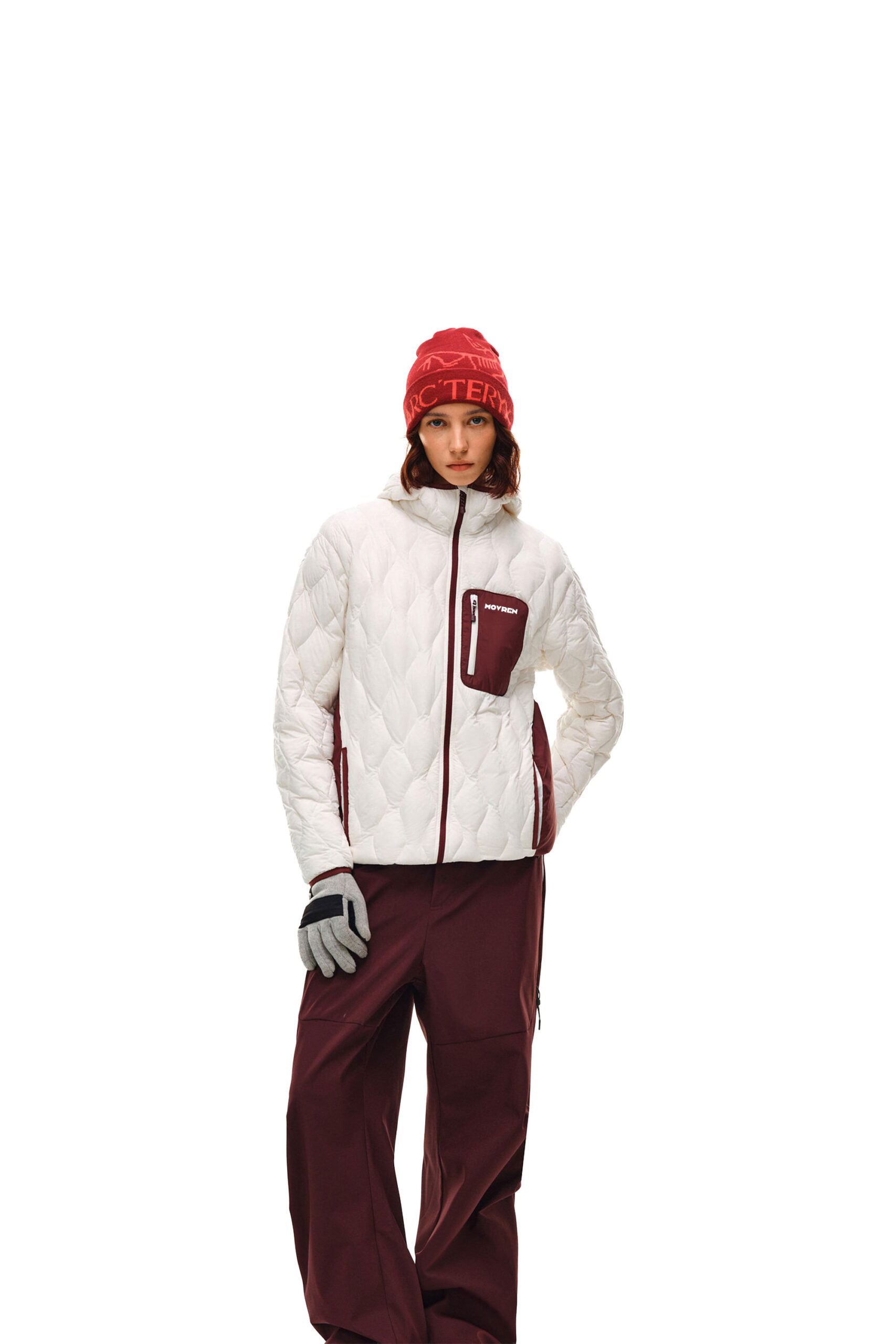 Tone-on-Tone Look: 이미지와 같이 버건디 컬러의 비니나 하의와 톤을 맞춰 매치하면 더욱 통일감 있고 전문적인 아웃도어 룩을 연출할 수 있습니다.