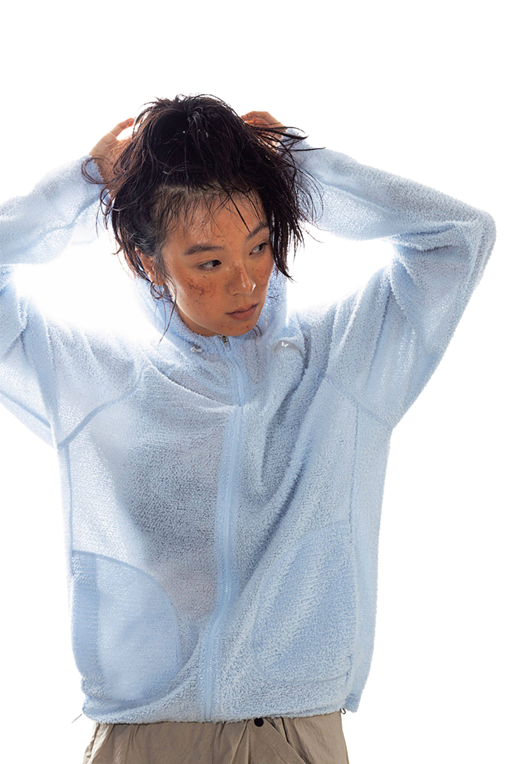 MOVREN의 트랜스페어런트 테크 메쉬 후드 자켓은